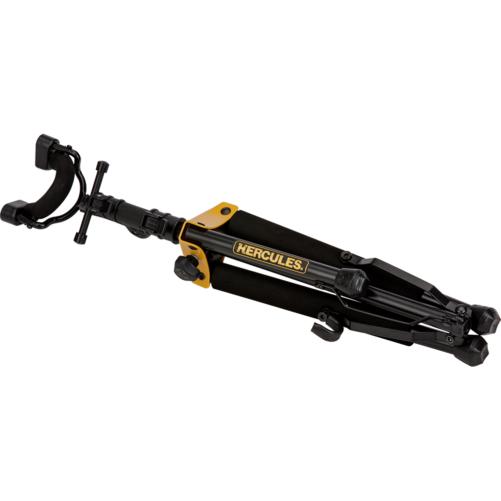 The HERCULES Violin/Viola Stand DS571BB features the Auto Grip System (AGS) yoke that protects the instrument and is compact enough to transport easily.